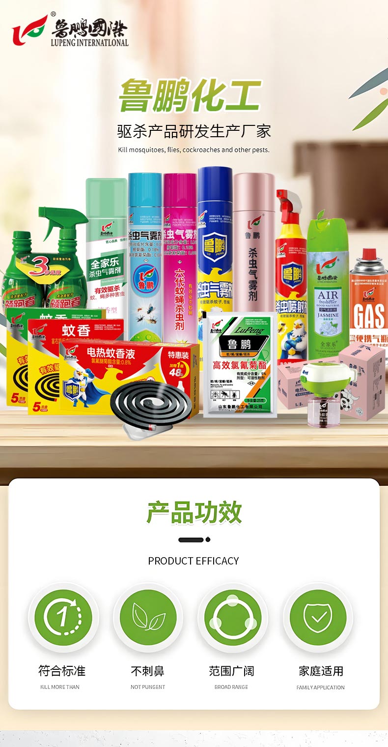 Copyright © 山东鲁鹏化工有限公司 All rights reserved 备案号:鲁ICP备18012717号-2 主要从事于杀虫气雾剂,杀虫喷射剂,电热蚊香液, 欢迎来电咨询!
